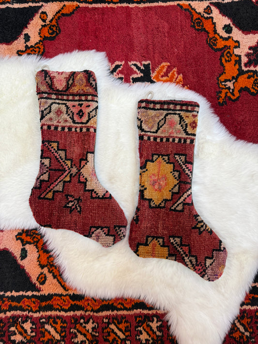 One of a kind Holiday stockings made with beautiful vintage rugs.