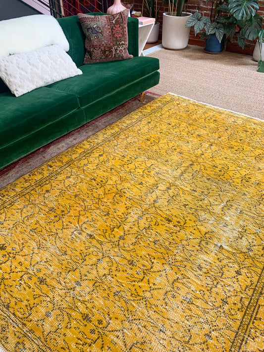 No. A1136- 5.8' x 9.4' Vintage Turkish Overdyed Area Rug