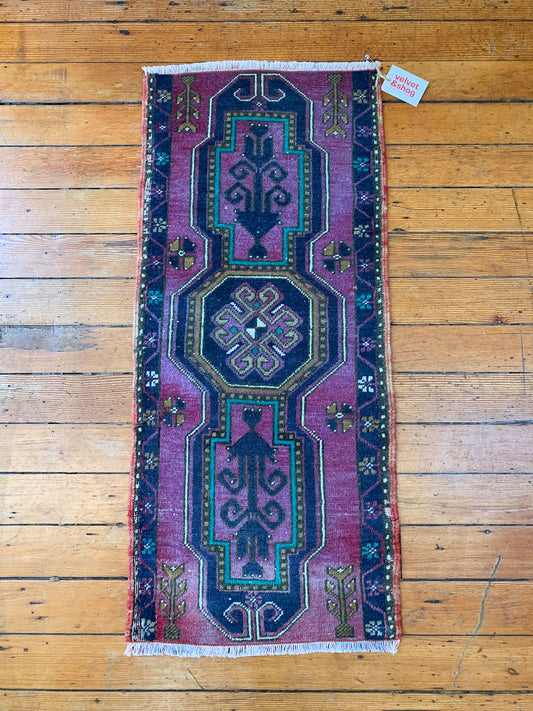 Reserved for Meg - No. 625 - 1.5' x 3.5' Vintage Turkish Mini Rug
