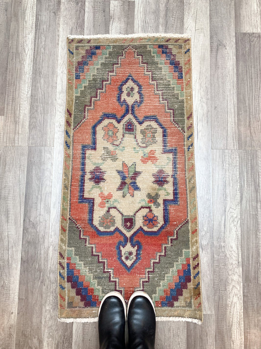 No. 595 - 1.4' x 3.1' Vintage Turkish Mini Rug