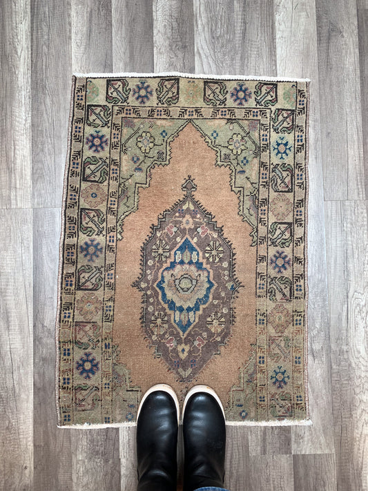 No. 602 - 1.4' x 3.0' Vintage Turkish Mini Rug
