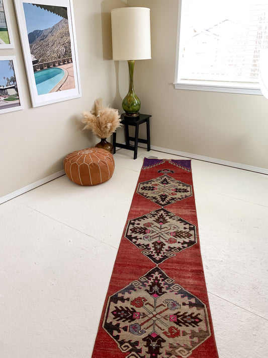 No. R1093 - 2.8' x 12.8' Vintage Turkish Runner Rug