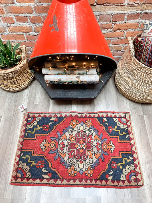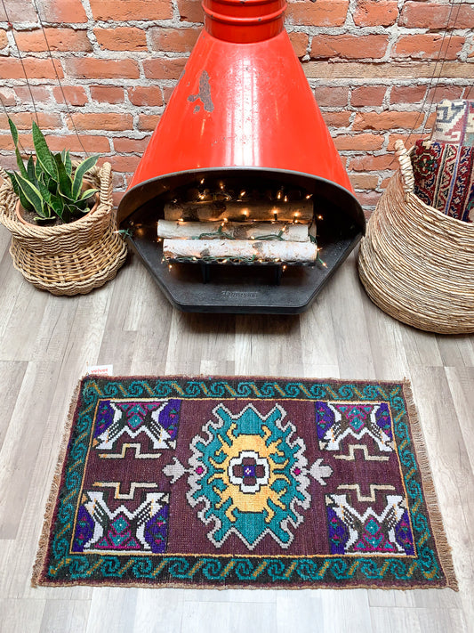Reserved for Tiffany- Vintage Turkish Mini Rug 2'x3.8' - No. 661
