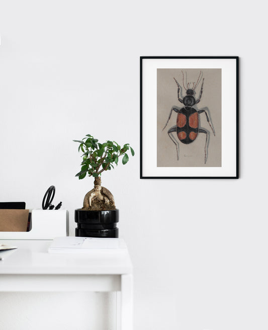 Rhinoceros Beetle Colored Pencil Drawing Print