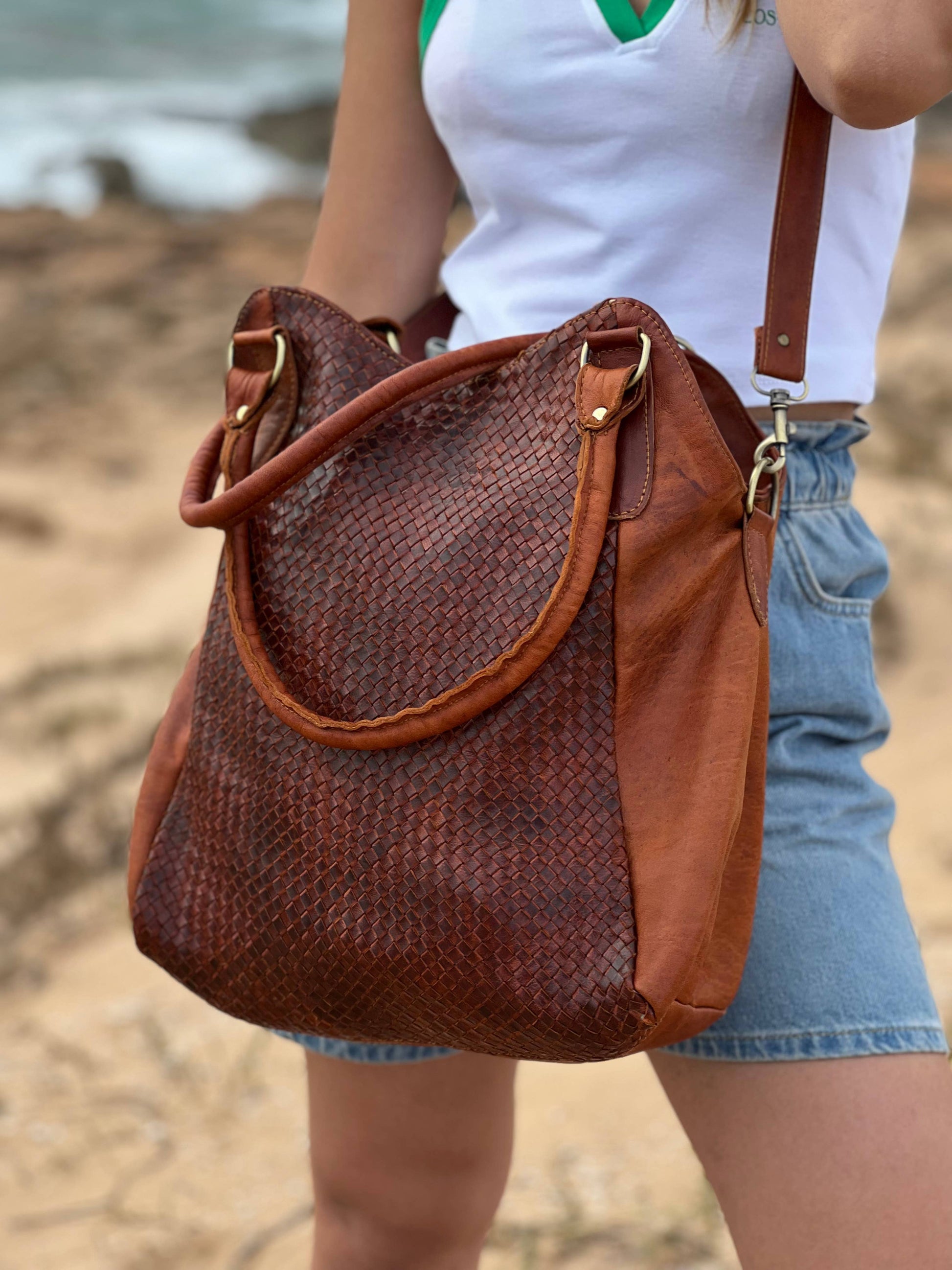 Handmade Woven Braided Leather bag Made in Morocco - No. BAG155