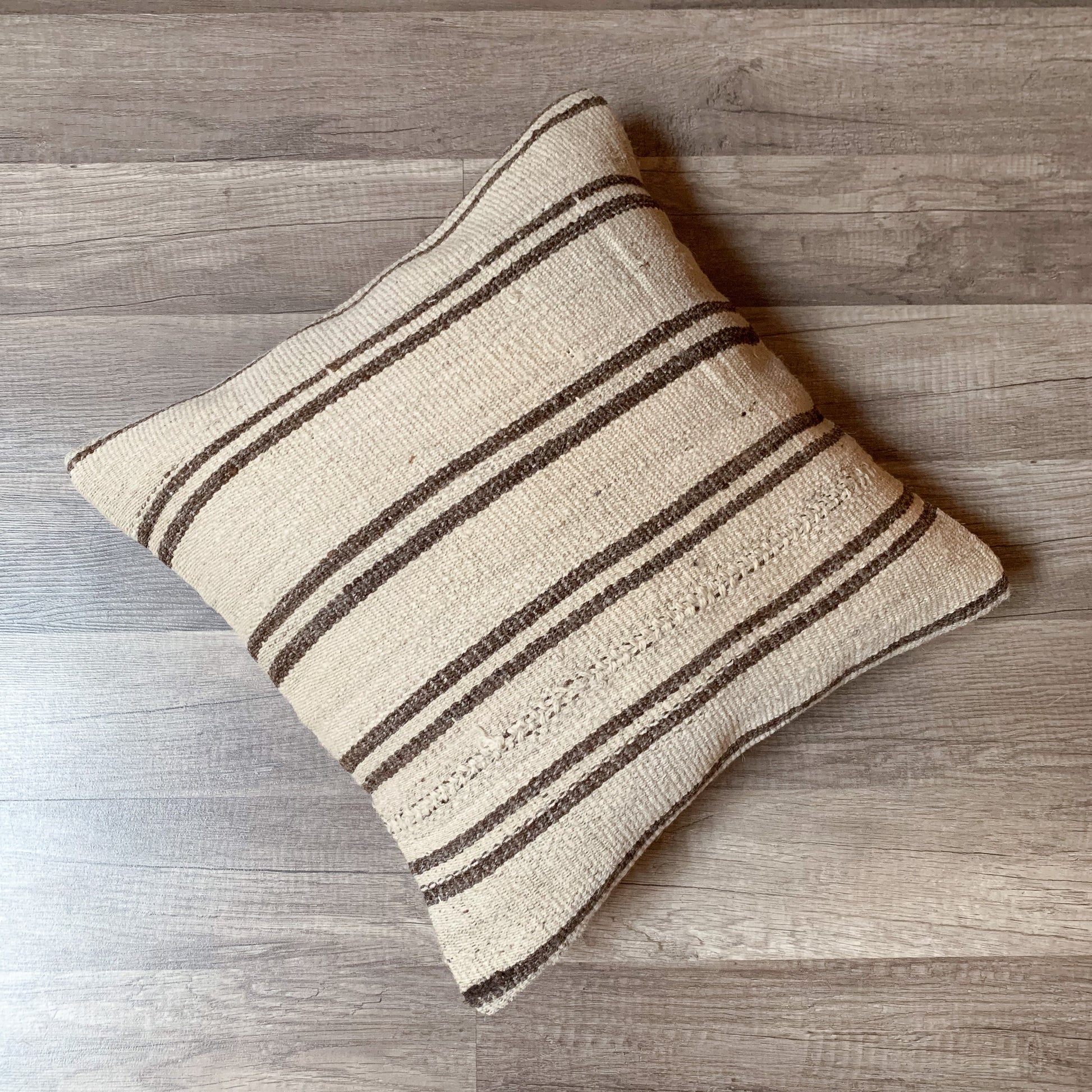 One-of-a-kind pillow cover handmade with vintage Turkish rugs. Due to natural wear and tear of any vintage rug/textile, color may be faded or spotted and the wool may be worn, which adds to the charm of this one-of-a kind piece.