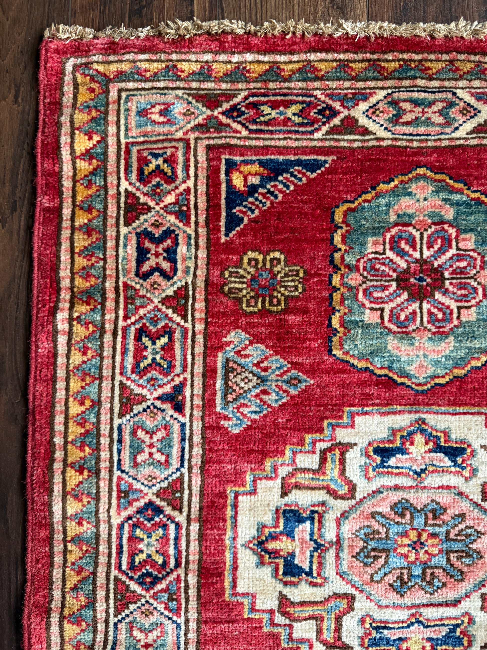 Qualities: medium pile, all natural wool, hand-knotted.