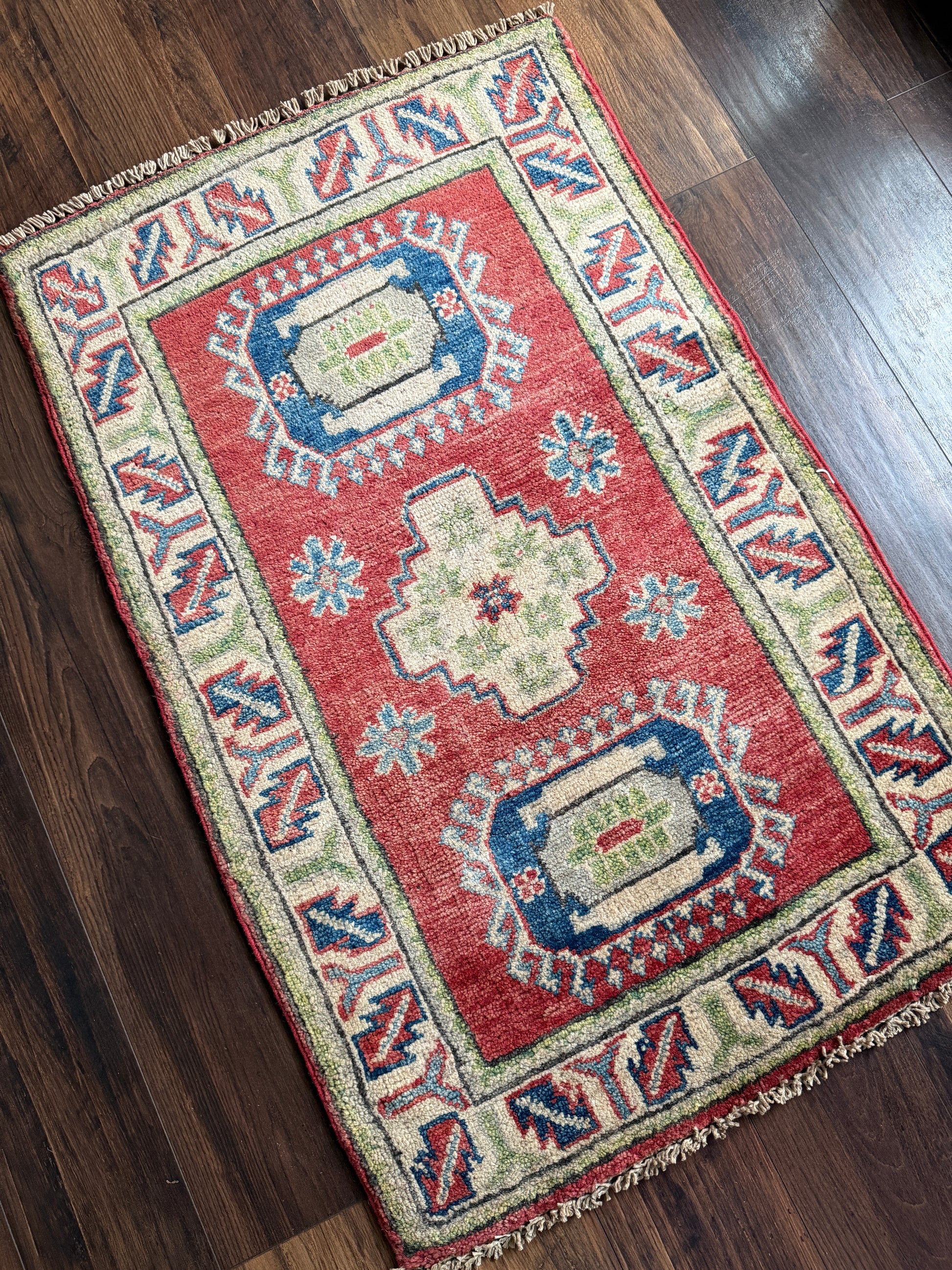 Qualities: medium pile, all natural wool, hand-knotted.