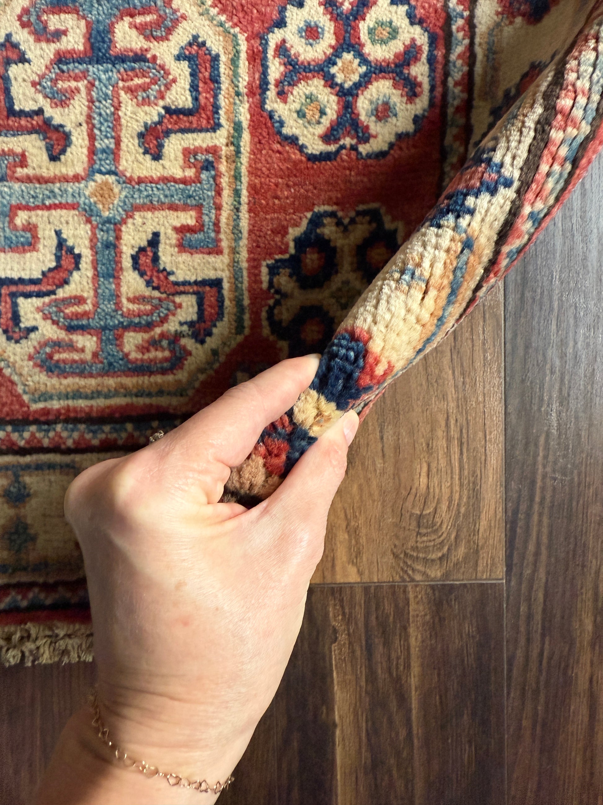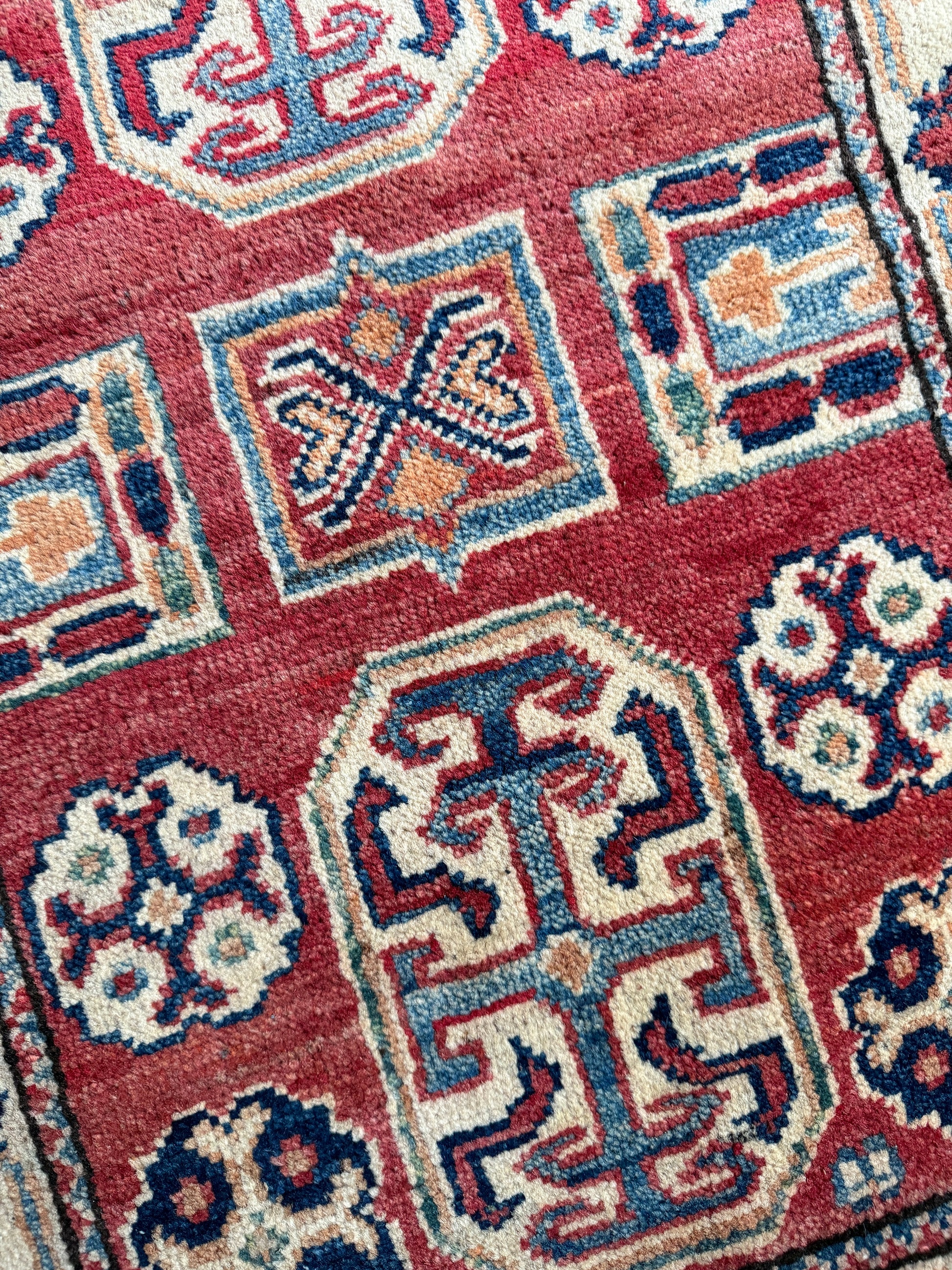 Qualities: medium pile, all natural wool, hand-knotted.