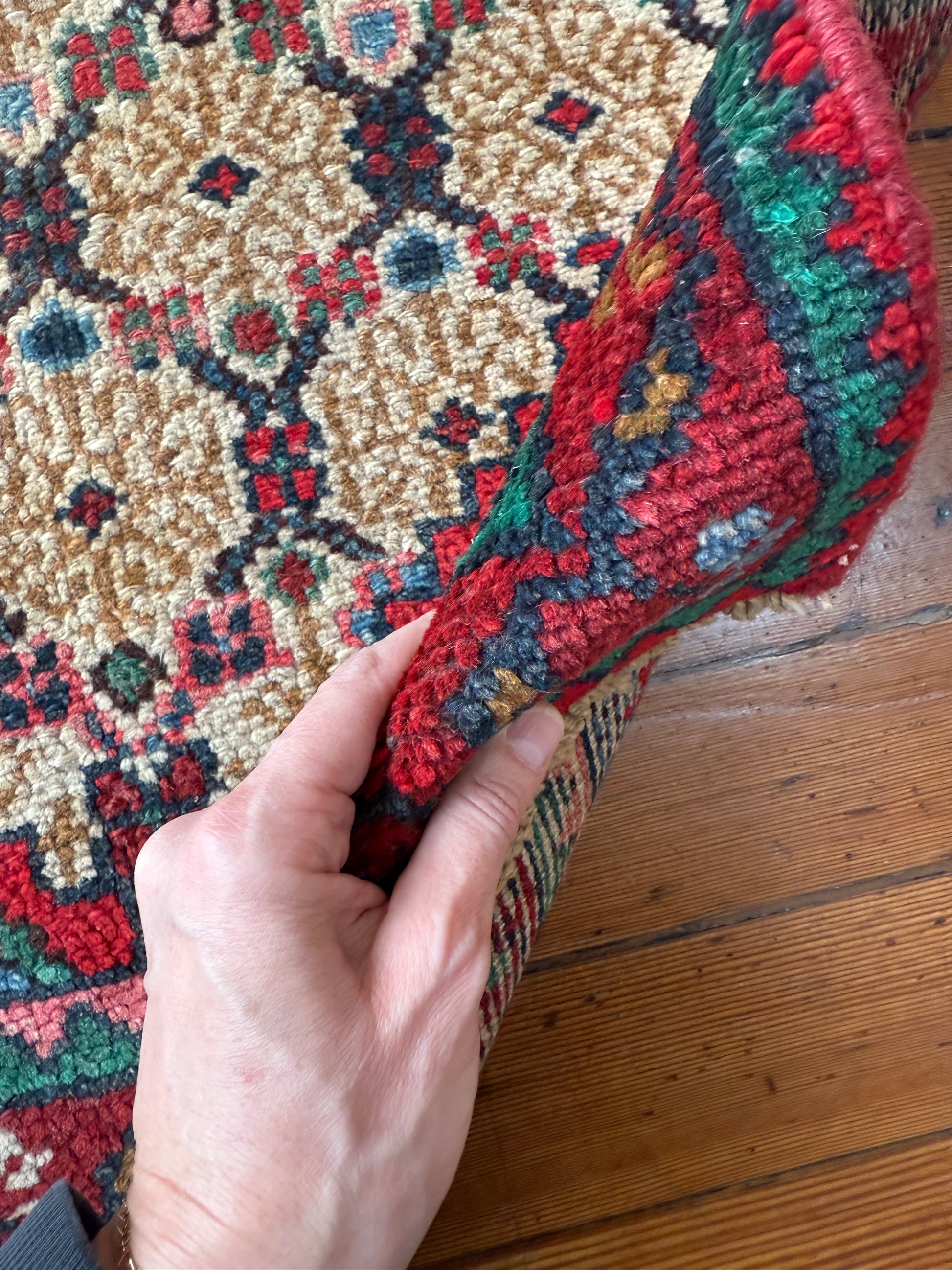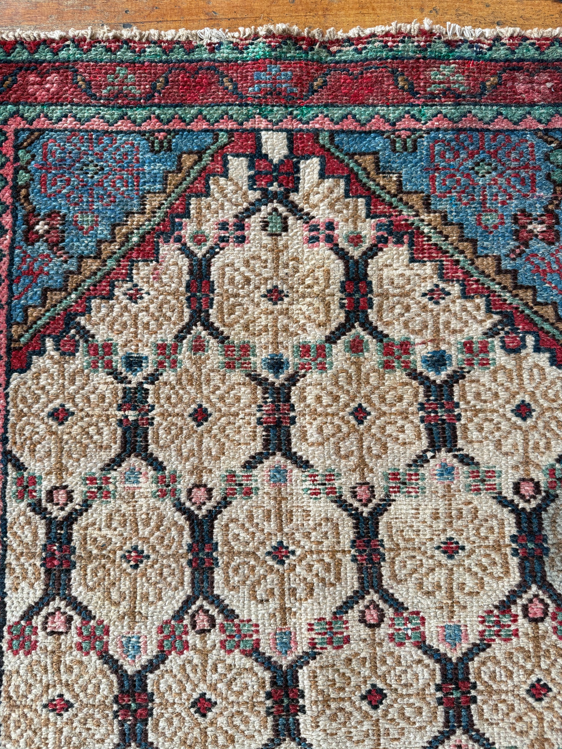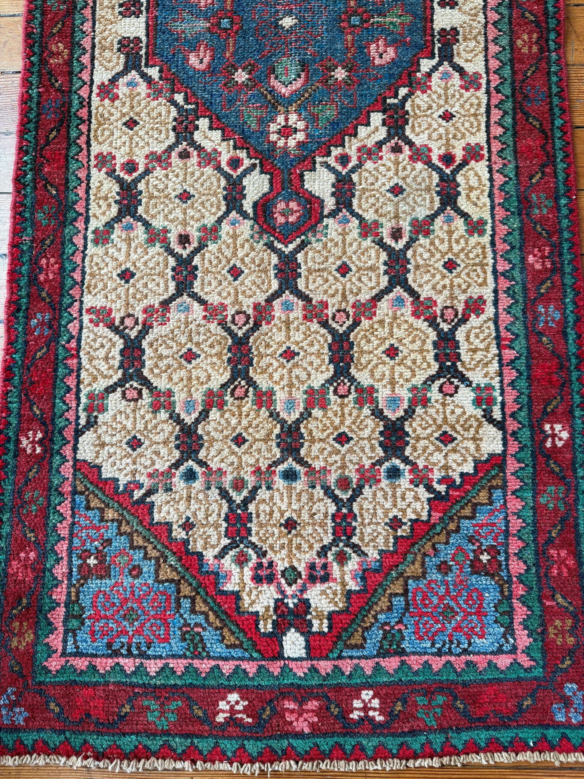 One-of-a-kind vintage Persian Serab wool rug from approximately the 1950's. Due to natural wear and tear of any vintage rug, color may be faded or spotted and the wool may be worn, which adds to the charm of this one-of-a kind piece.