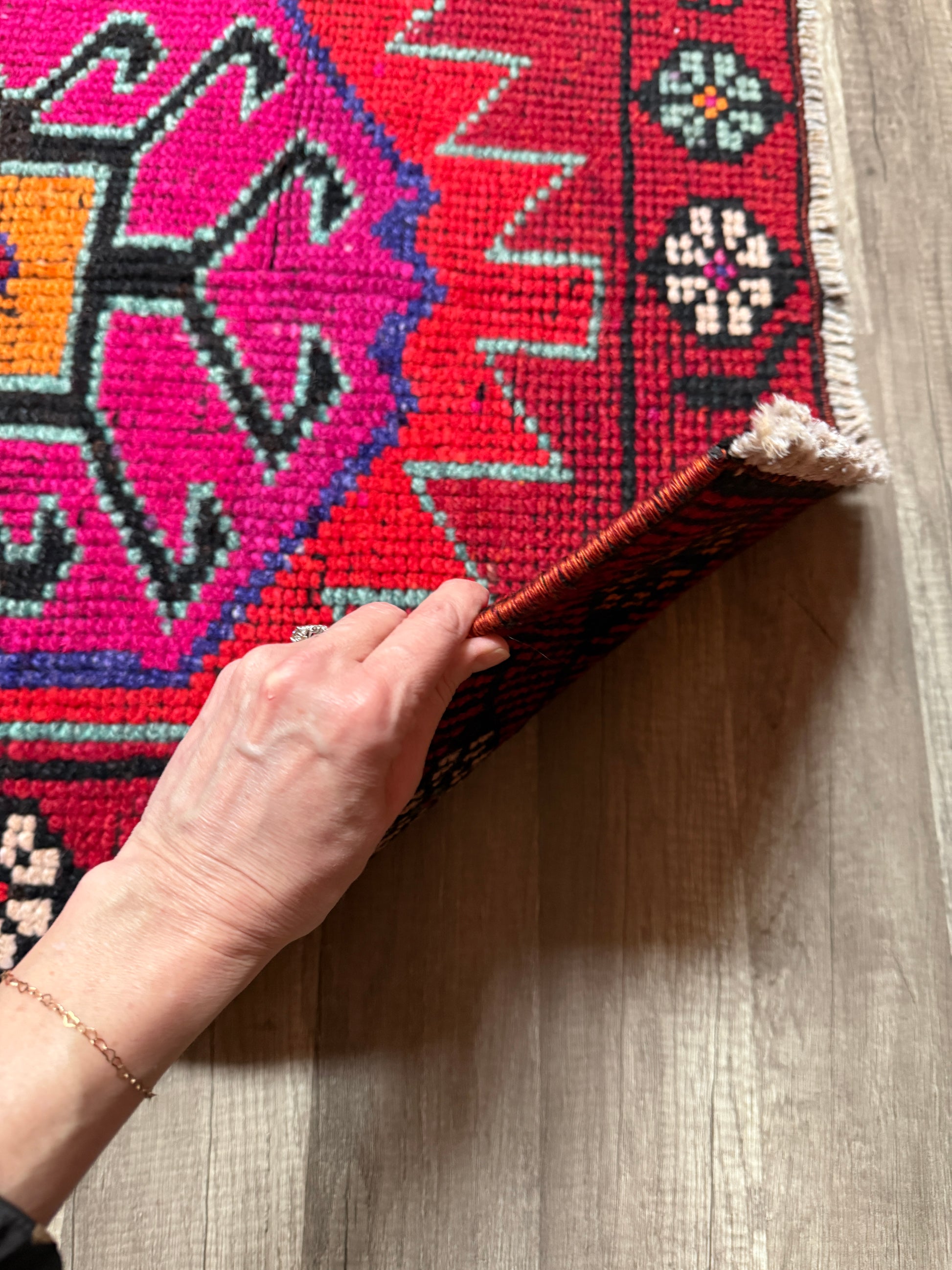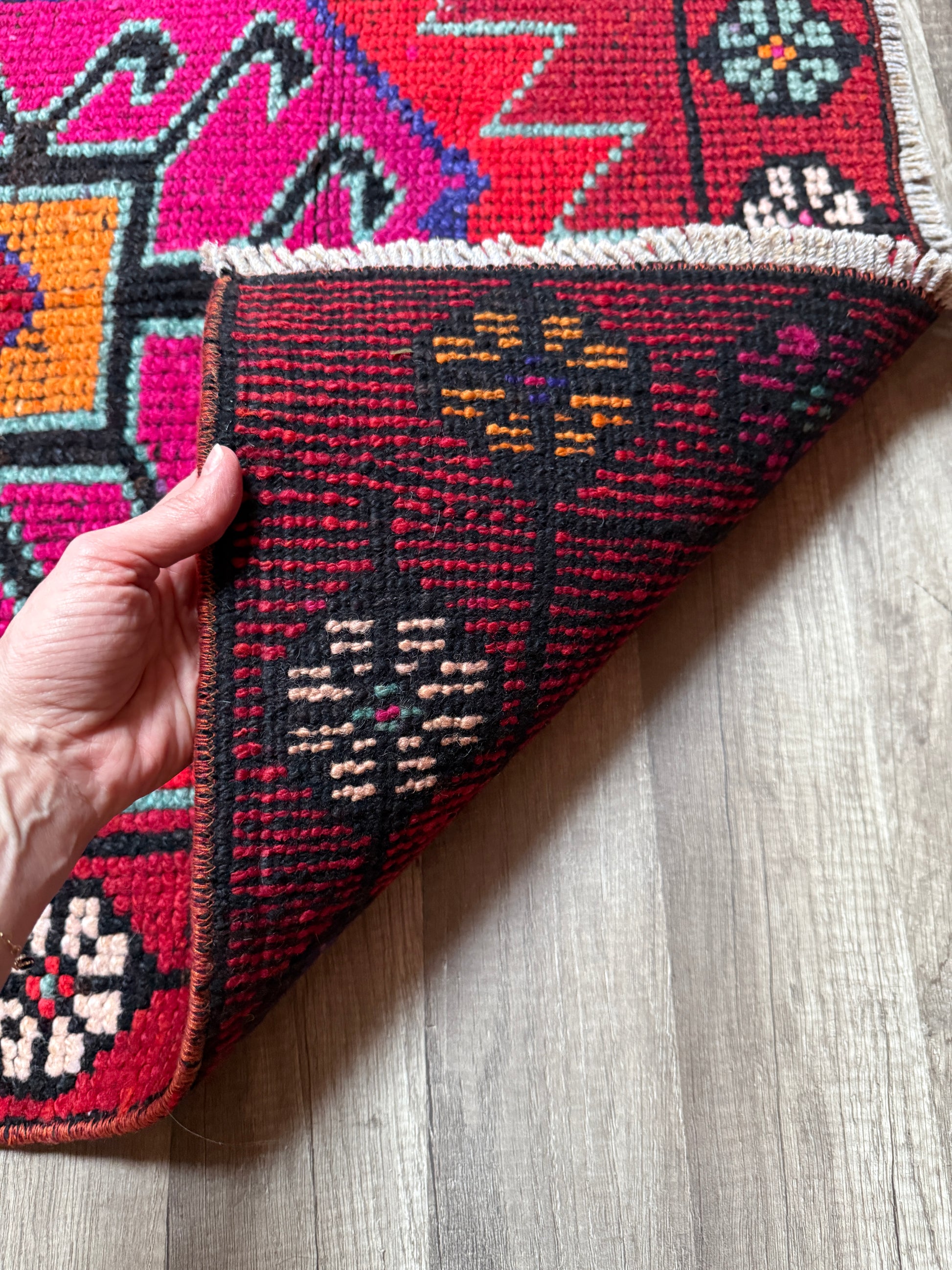 Qualities: medium pile, flatweave, all natural wool, handmade.